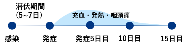 プールで感染することもあることから、プール熱とも言います。症状としては、結膜にブツブツや咽頭痛、発熱などです。